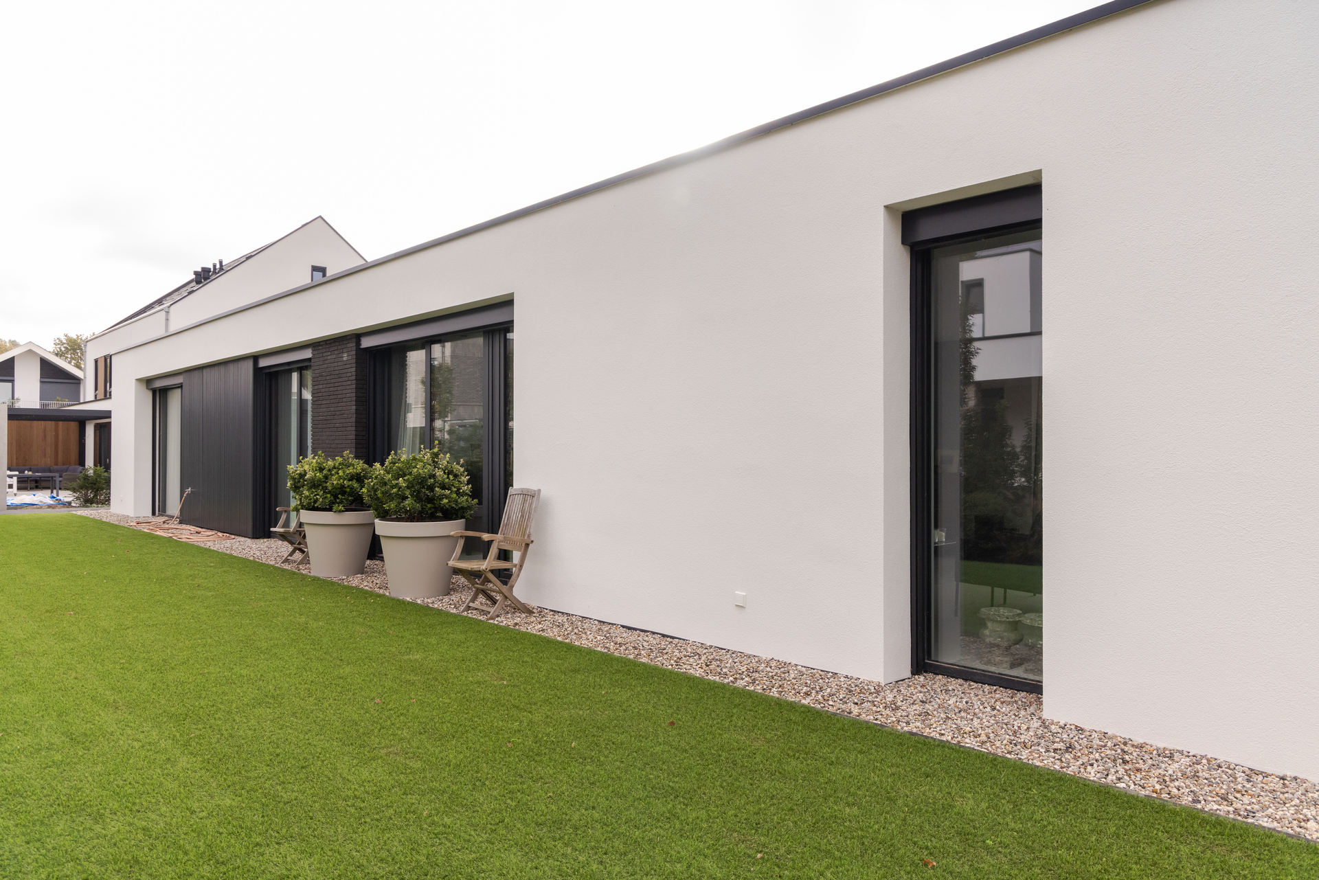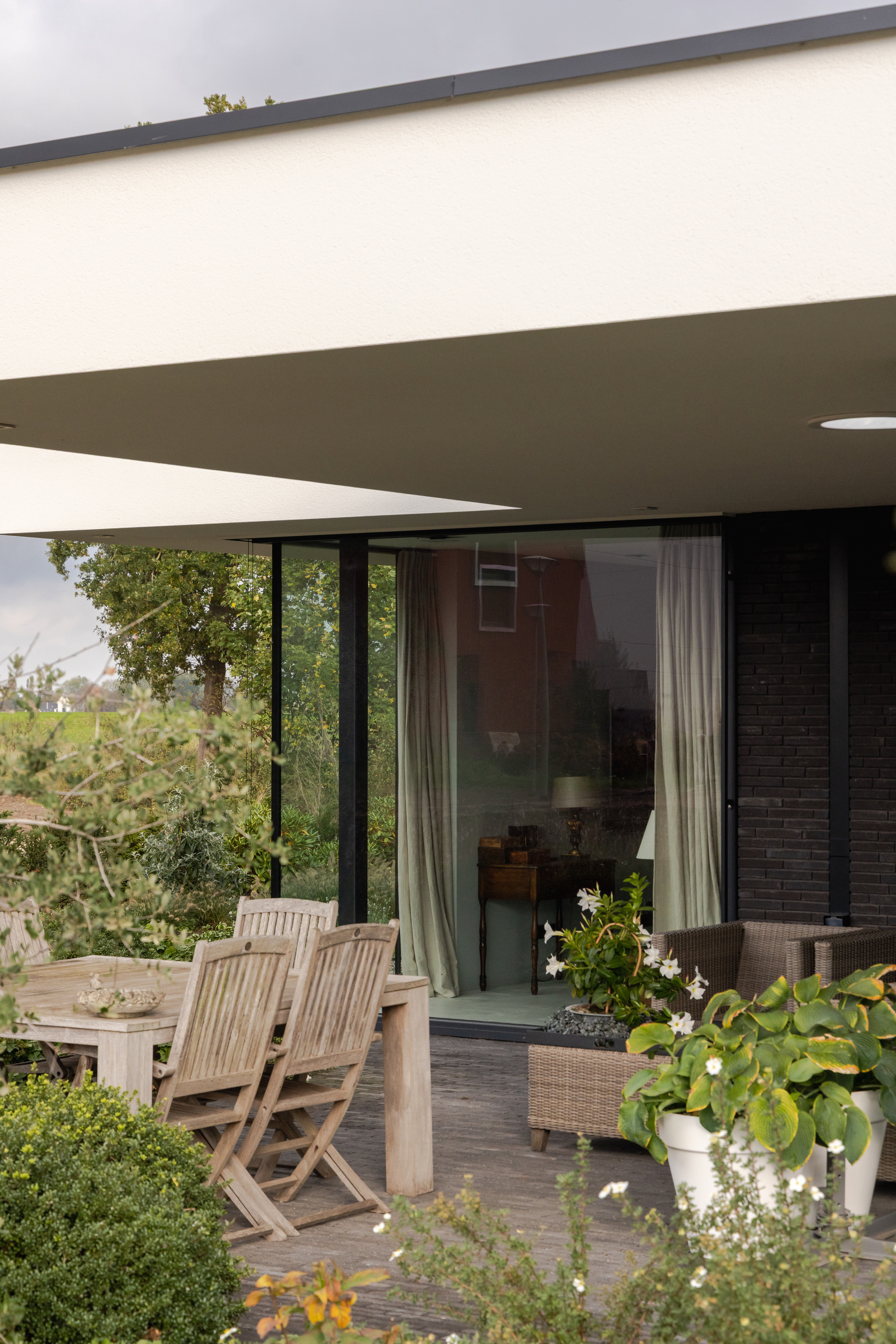 Voor deze woning realiseerden we aluminium schuifpuien en glaspartijen met slanke profielen. Ze zorgen voor veel licht in huis en een directe verbinding met de tuin. Alles is maatwerk en afgestemd op de woning.